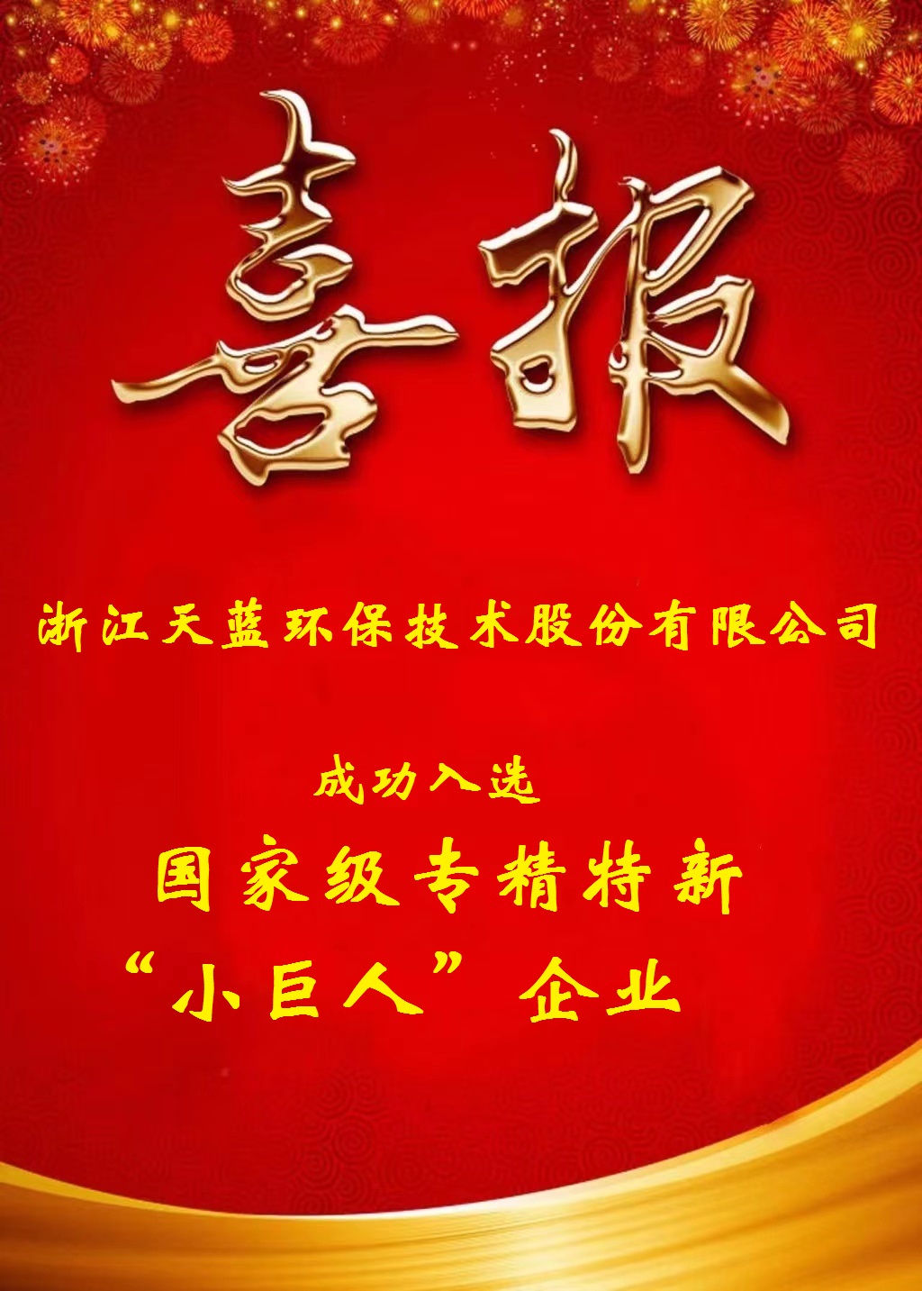 近日,浙江省經(jīng)濟(jì)和信息化廳發(fā)布了《關(guān)于浙江省第四批專精特新“小巨人”企業(yè)和第一批專精特新“小巨人”復(fù)核通過企業(yè)名單的公示》,天藍(lán)環(huán)保憑借在大氣污染治理領(lǐng)域的技術(shù)創(chuàng)新綜合實(shí)力和市場占有率,成功入選國家級(jí)專精特新“小巨人”企業(yè)名單。